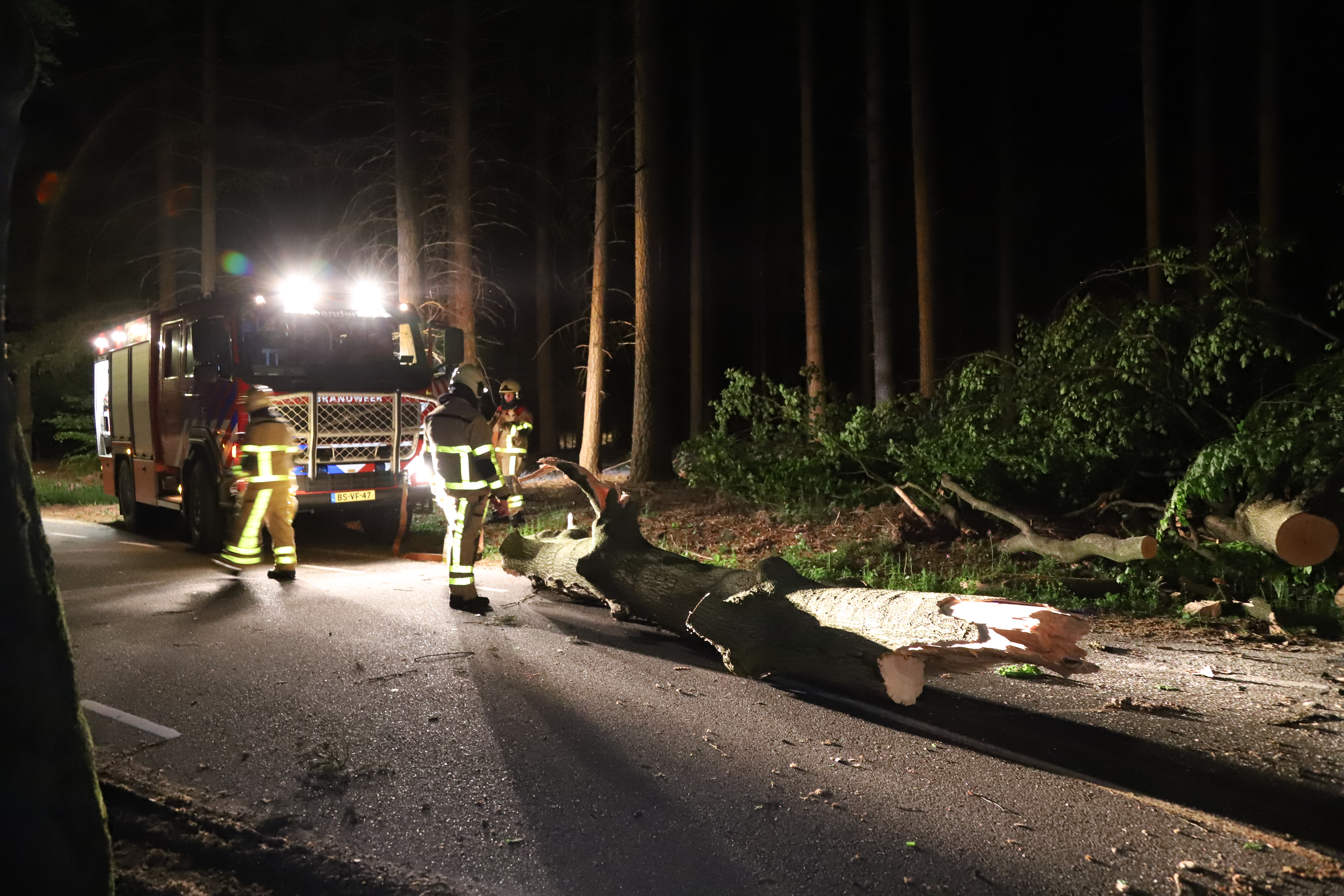 De brandweer heeft de boomstam verwijderd die op de weg is gevallen. De boom is halverwege de stam geknapt. Ze hebben doormiddel van een lier de boomstam de berm in proberen te trekken. Het verkeer moest omrijden of wachten totdat de stam volledig is weggehaald.