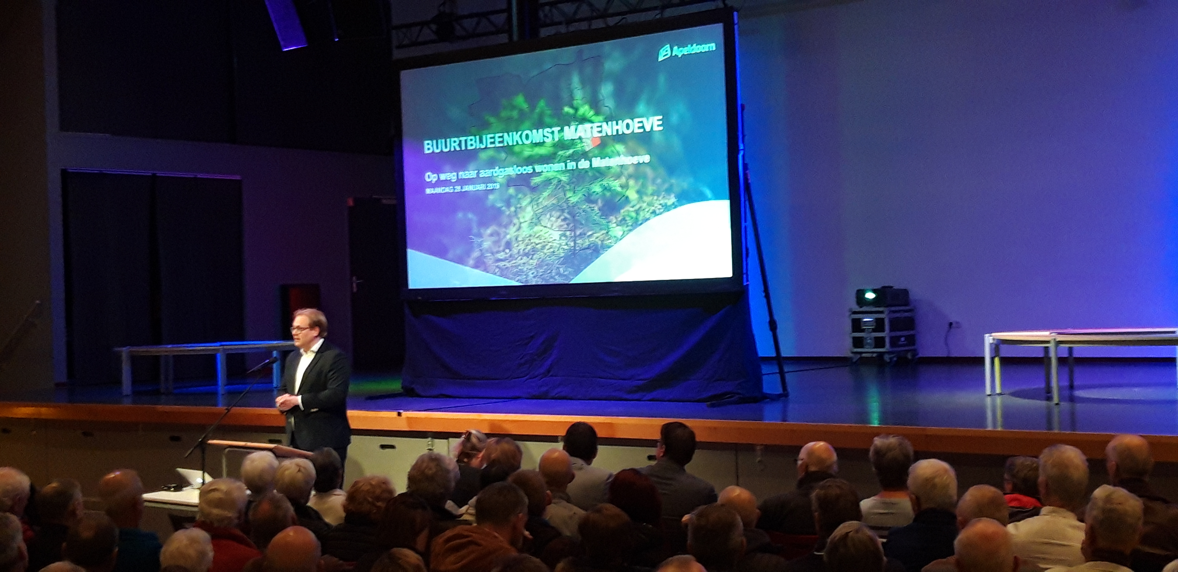 APELDOORN - Onder grote belangstelling heeft de gemeente Apeldoorn gisteravond de plannen ontvouwd op weg naar aardgas loos wonen in de Matenhoeve. Er was vooraf gerekend op 400 belangstellenden, echter prompt moesten er extra stoelen bijgeplaatst worden.
