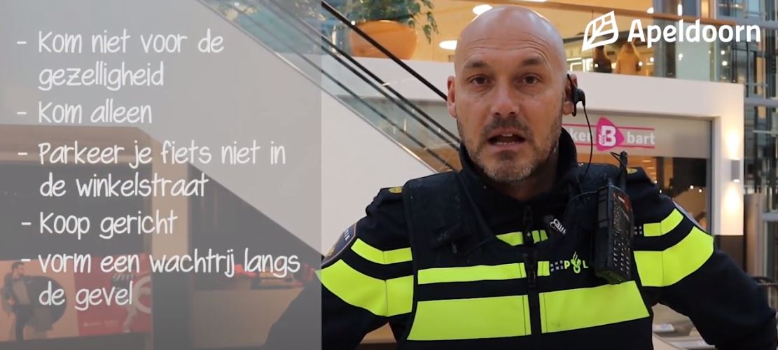 APELDOORN - Veel winkels zijn weer open. Als het druk is in de binnenstad, wordt het moeilijk om anderhalve meter afstand te houden en krijgt het virus weer vrij spel. Wijkagent Erol Kalay en burgemeester Ton Heerts op inspectie in de binnenstad.