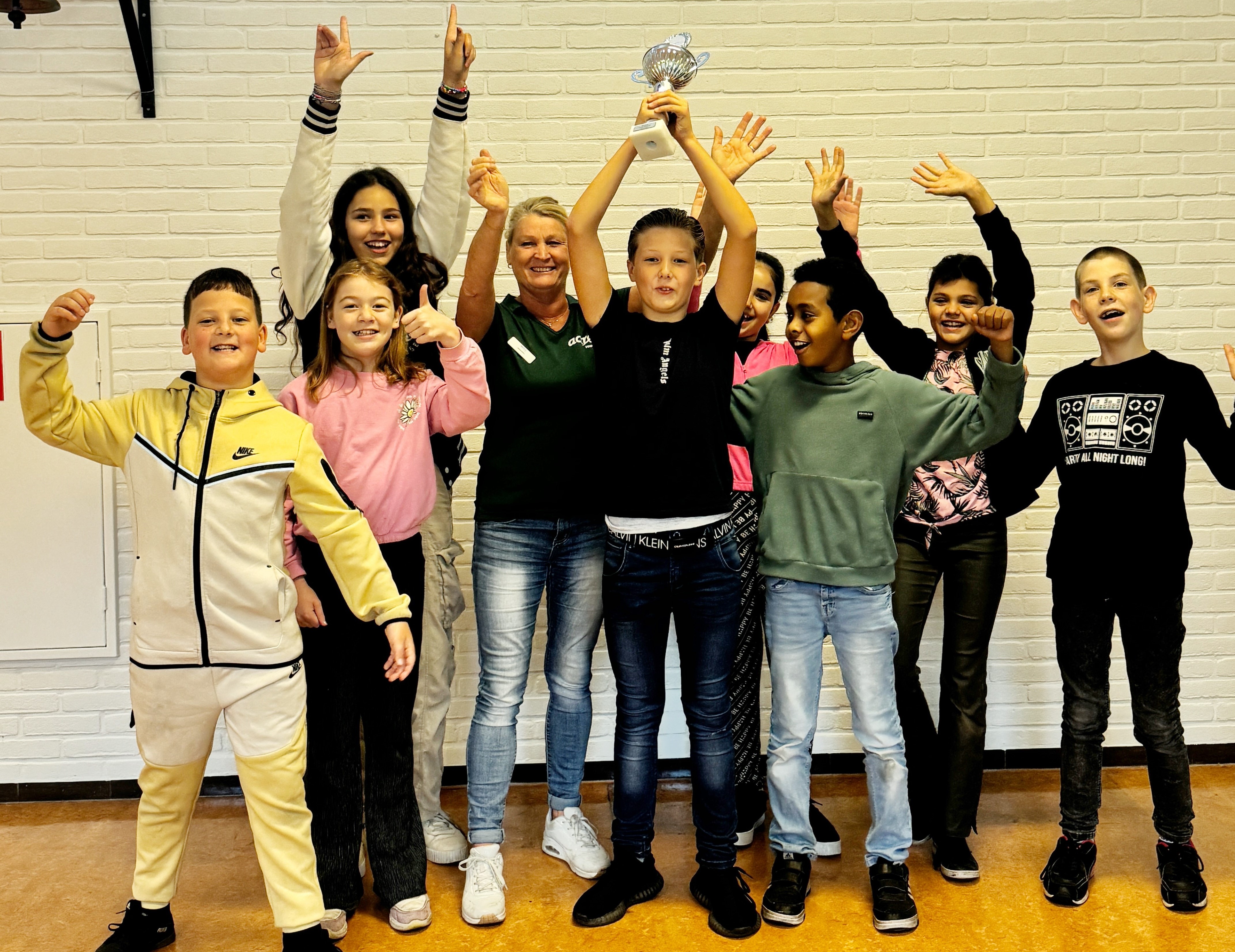 OBS de Rietendakschool heeft de ZwemChallenge voor scholen gewonnen. De beker werd uitgereikt aan de leerlingen van groep 7 en 8 door Jacqeline Veldhuizen van Aquacentrum Malkander.