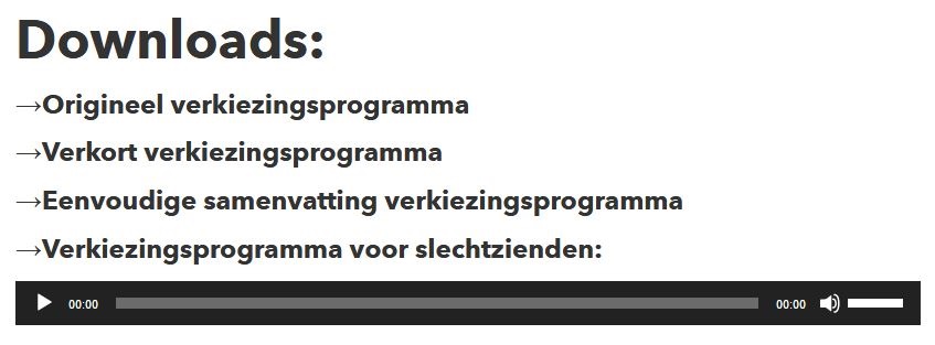 De eenvoudige versie wordt ondersteund met duidelijke pictogrammen, waarbij de standpunten in een zin verwoord zijn. Mensen die wat meer moeite hebben met lezen, of mensen die in één oogopslag willen zien waar een partij voor staat, kunnen zo snel en eenvoudig het programma tot zich nemen. Kerris: ‘‘Iedereen moet makkelijk kunnen kiezen welke partij het beste bij ze past. Dat is een recht in een democratie. Vandaar dat we ons programma op deze manier voor iedereen toegankelijk maken.’