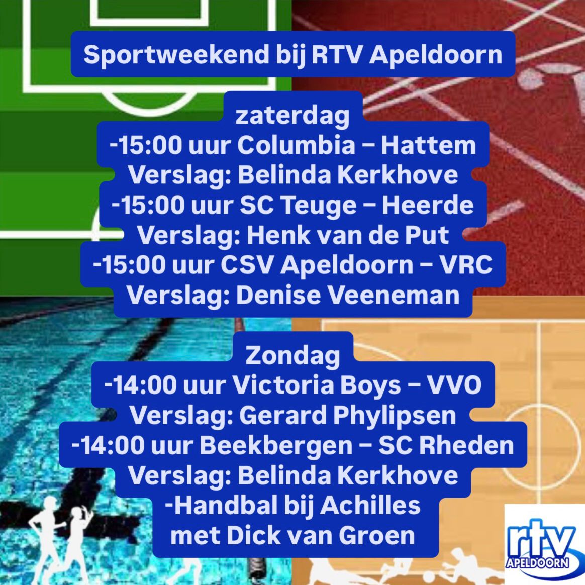 De laatste uurtjes van de werkweek tikken weg. En in het weekend, dan is het tijd voor sport! Luister je naar RTV Apeldoorn? Dan ben je weer helemaal op de hoogte!