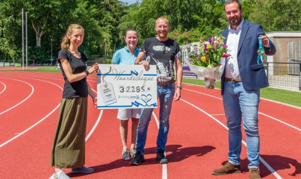 HARDLOPEN – Toen in maart door het coronavirus alle evenementen een voor een van de loopkalender vielen, ontstond het initiatief voor de CoronaRUN. Met 2.500 deelnemers werd het een groot succes. Bovendien liepen de deelnemers aan de CoronaRUN een geweldig bedrag bij elkaar voor het Nationaal Ouderenfonds. Een cheque van maar liefst 32.285 euro werd gisteren op de atletiekbaan van AV ’34 in Apeldoorn overhandigd.