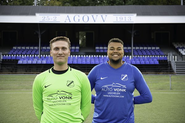 VOETBAL - Ruben Fremouw (26) en Moreno Schoenmakers (22) spelen ook volgend seizoen bij AGOVV. Het wordt voor beide spelers het tweede opeenvolgende seizoen op sportpark Berg en Bos.