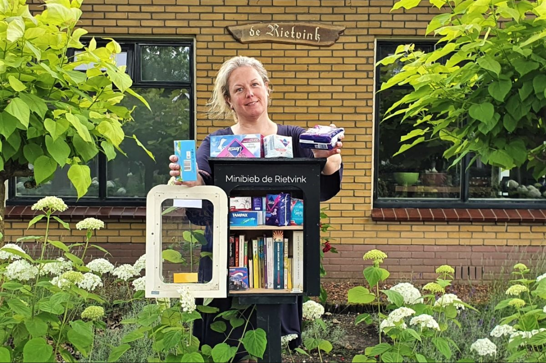 De Apeldoorner Renée Kranenberg heeft in haar minibieb aan de Beeklustweg 30 alle menstruatieproducten staan die je maar nodig kunt hebben. Ze stelt deze producten beschikbaar voor meisjes en vrouwen die niet genoeg geld hebben om ze zelf te kopen. Ze is inmiddels niet meer de enige.