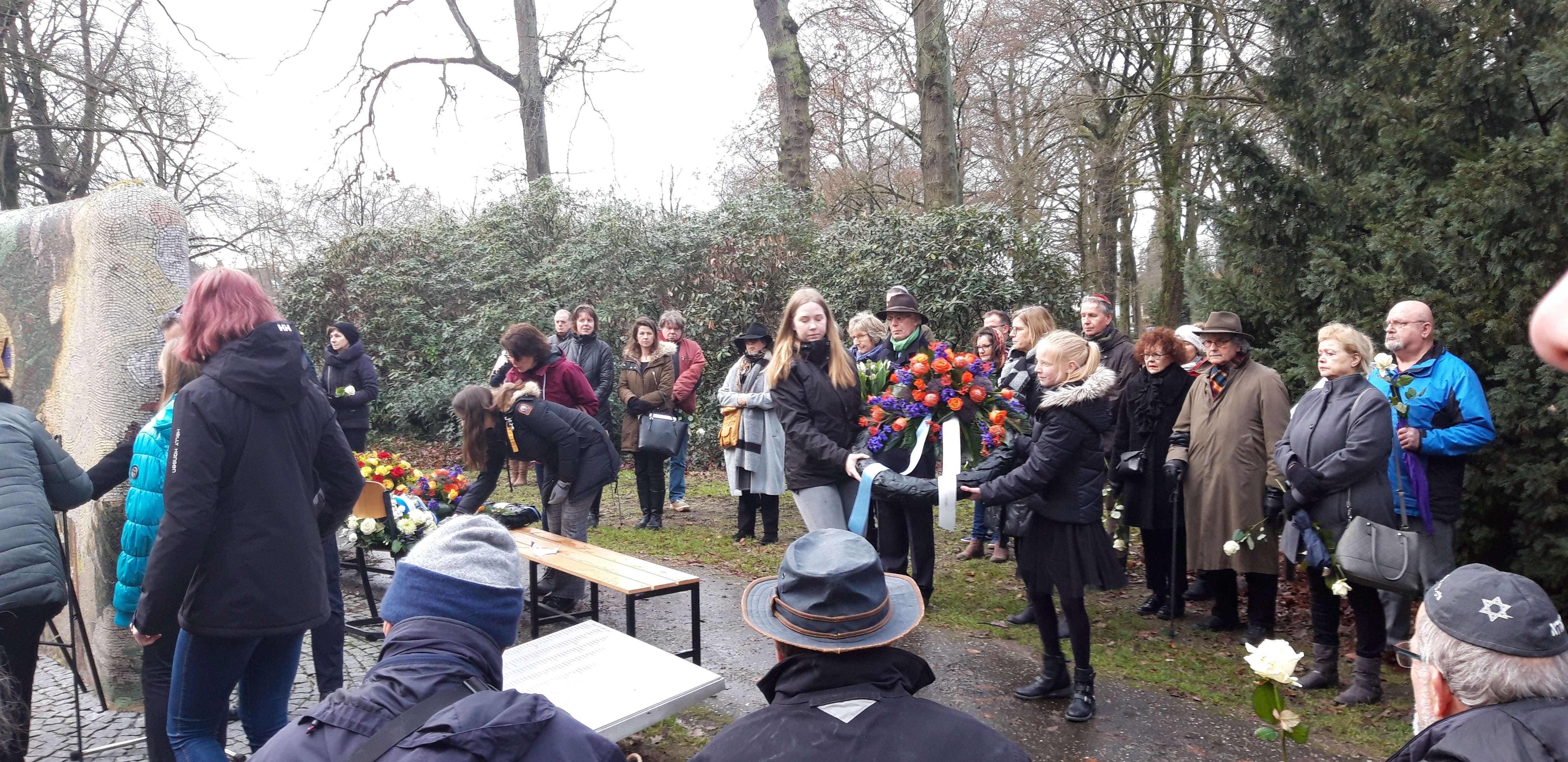 De herdenking werd afgesloten met het leggen van kransen, bloemen en naar Joodse traditie met steentjes.