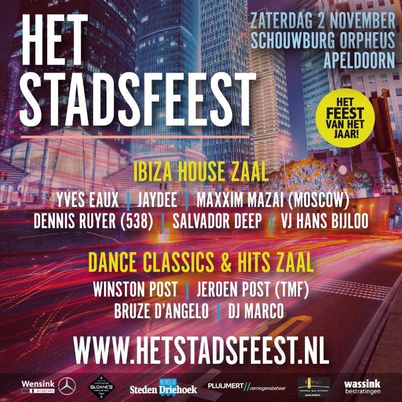 APELDOORN - Vanwege het enorme succes is op zaterdag 2 november Het Stadsfeest terug in Schouwburg Orpheus. Vanaf 21.00 uur kan iedereen die in Apeldoorn woont, werkt of er graag komt, genieten van het grootste 25+ feest van Midden-Nederland.