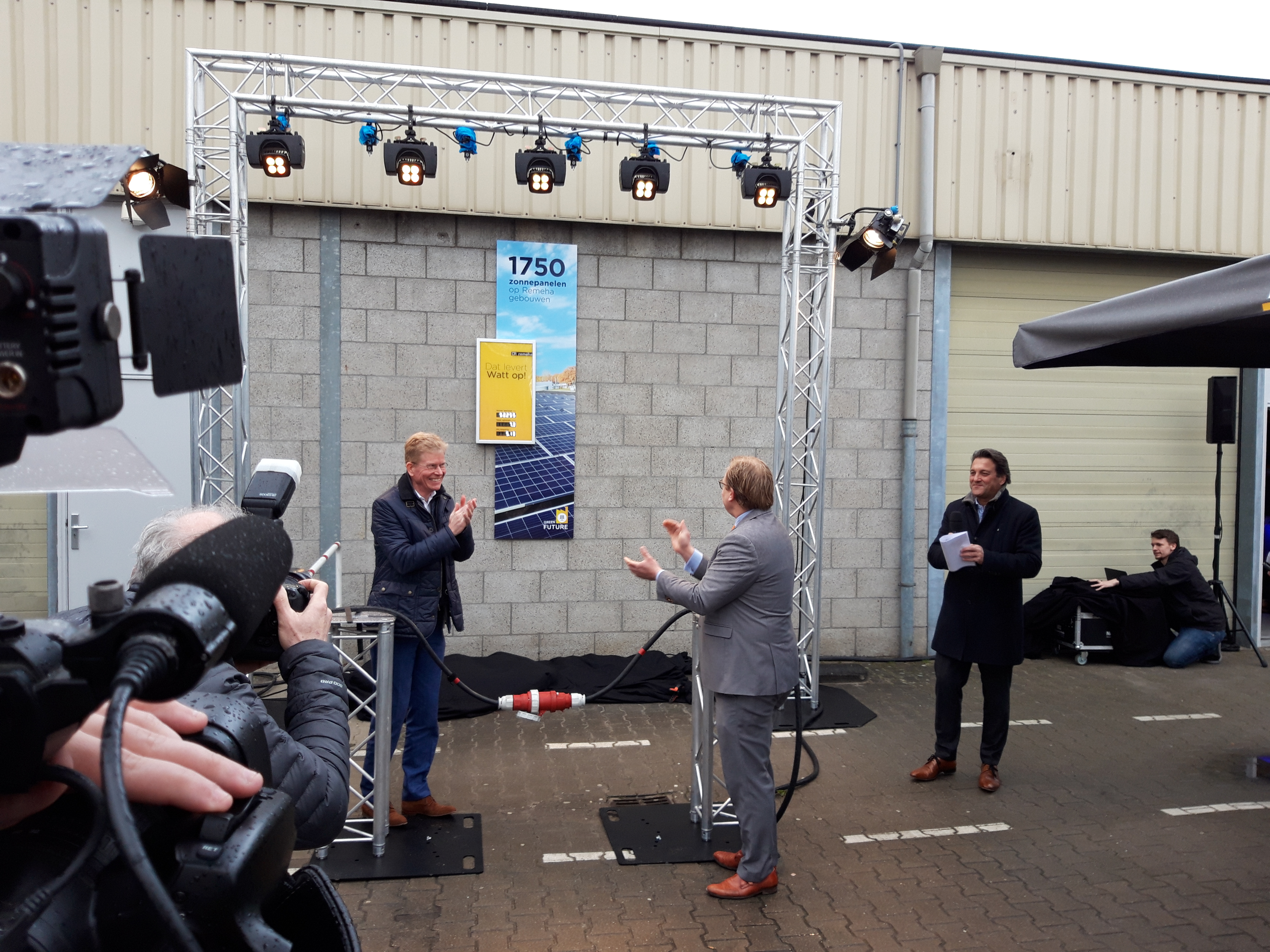 APELDOORN - Vandaag de officiële ingebruikname van de Remeha zonnecentrale. Wethouder M. Sandmann stelde de zonnecentrale in gebruik door twee stroomkabels aan elkaar te verbinden en hiermee de centrale in werking te stellen.