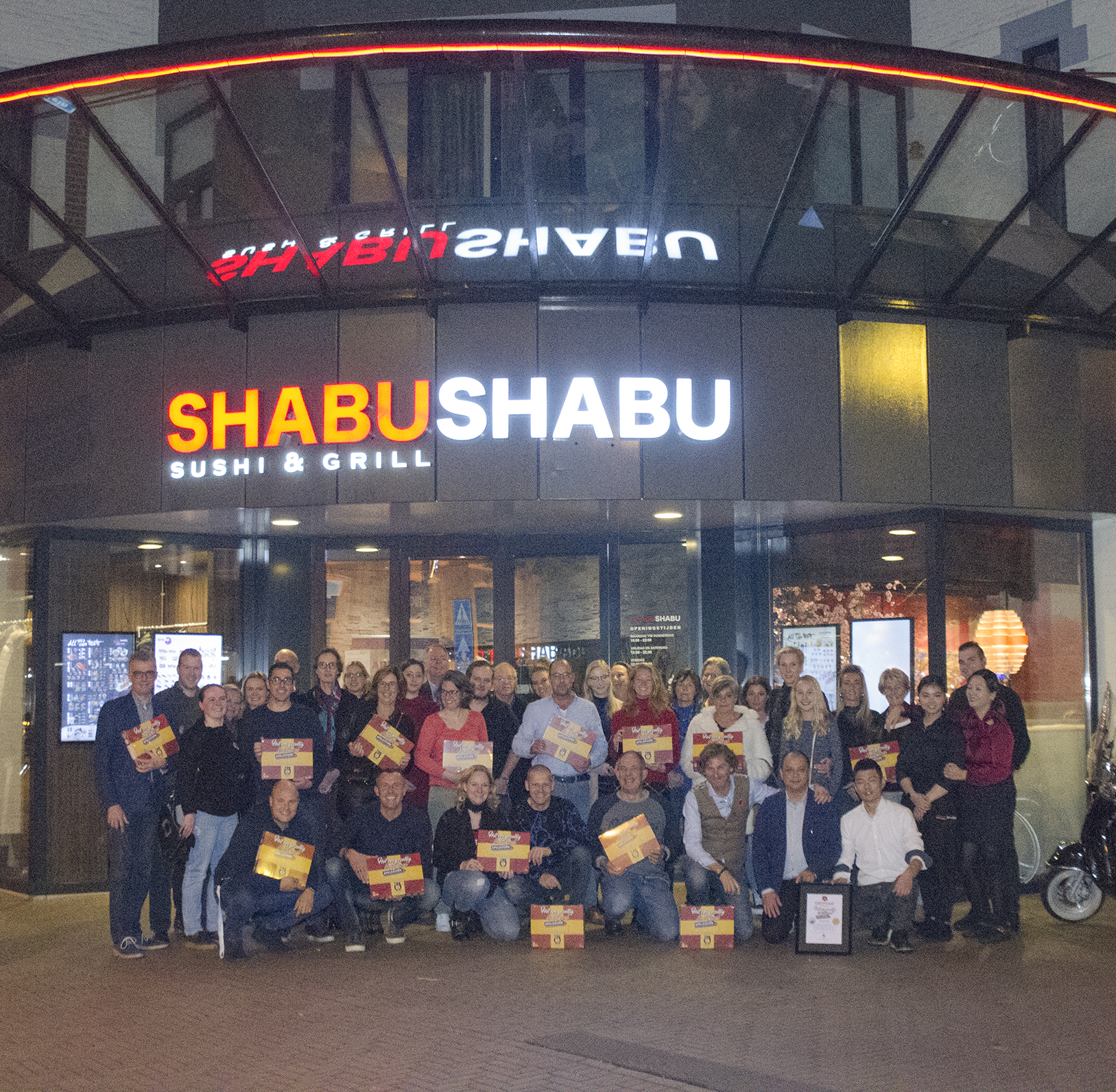 De lancering van Het Oergezellig Bordspel Apeldoorn is een feit. Maandag 5 november overhandigde Bart Wisbrun, oprichter van de stichtingTegenZinloosGeweld, het bordspel aan Yvonne Tse-Kok van ShabuShabu en aan alle deelnemers van het spel.