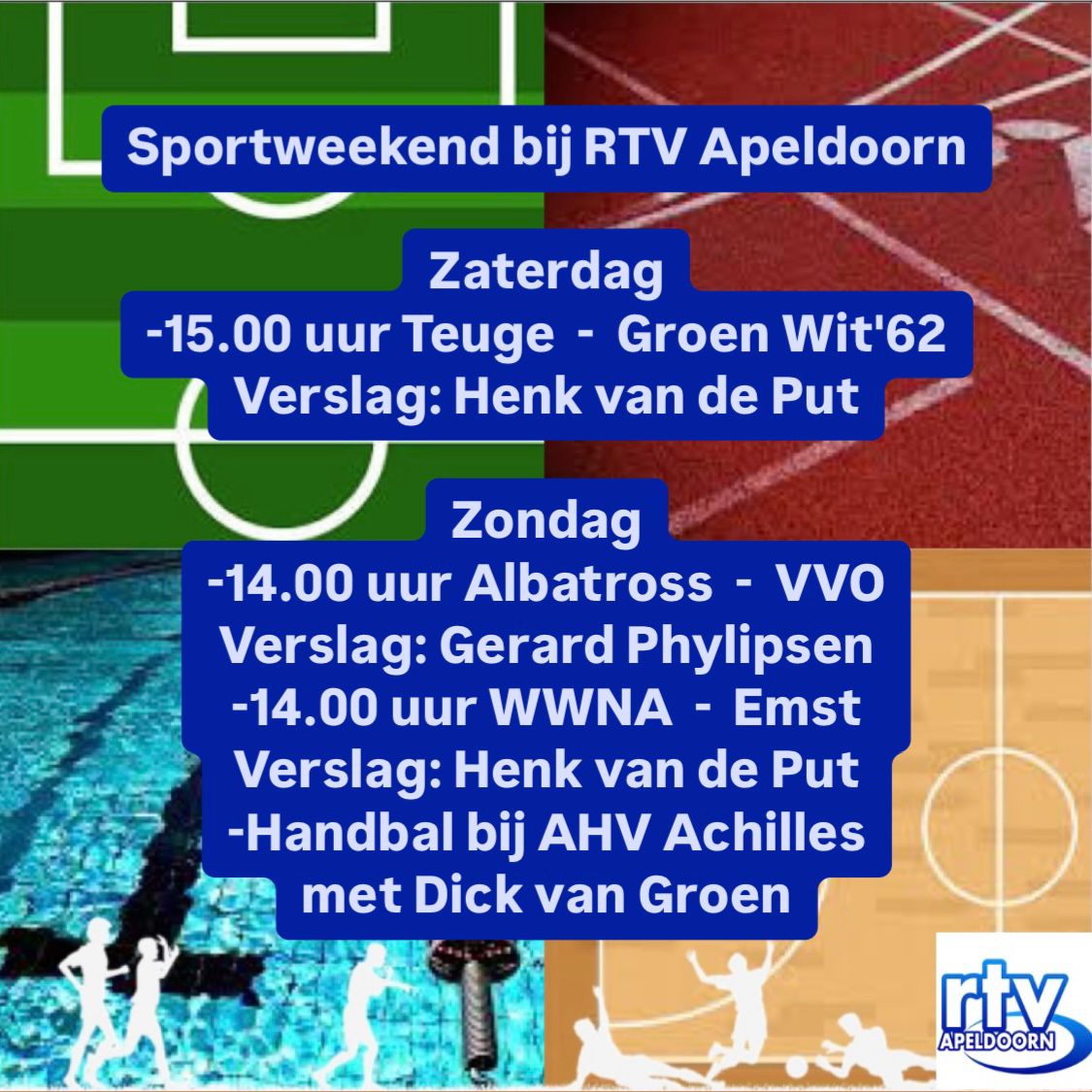 Er staat voor het komende weekend weer de nodige sport op het programma. En dus houden wij je bij RTV Apeldoorn weer helemaal op de hoogte.