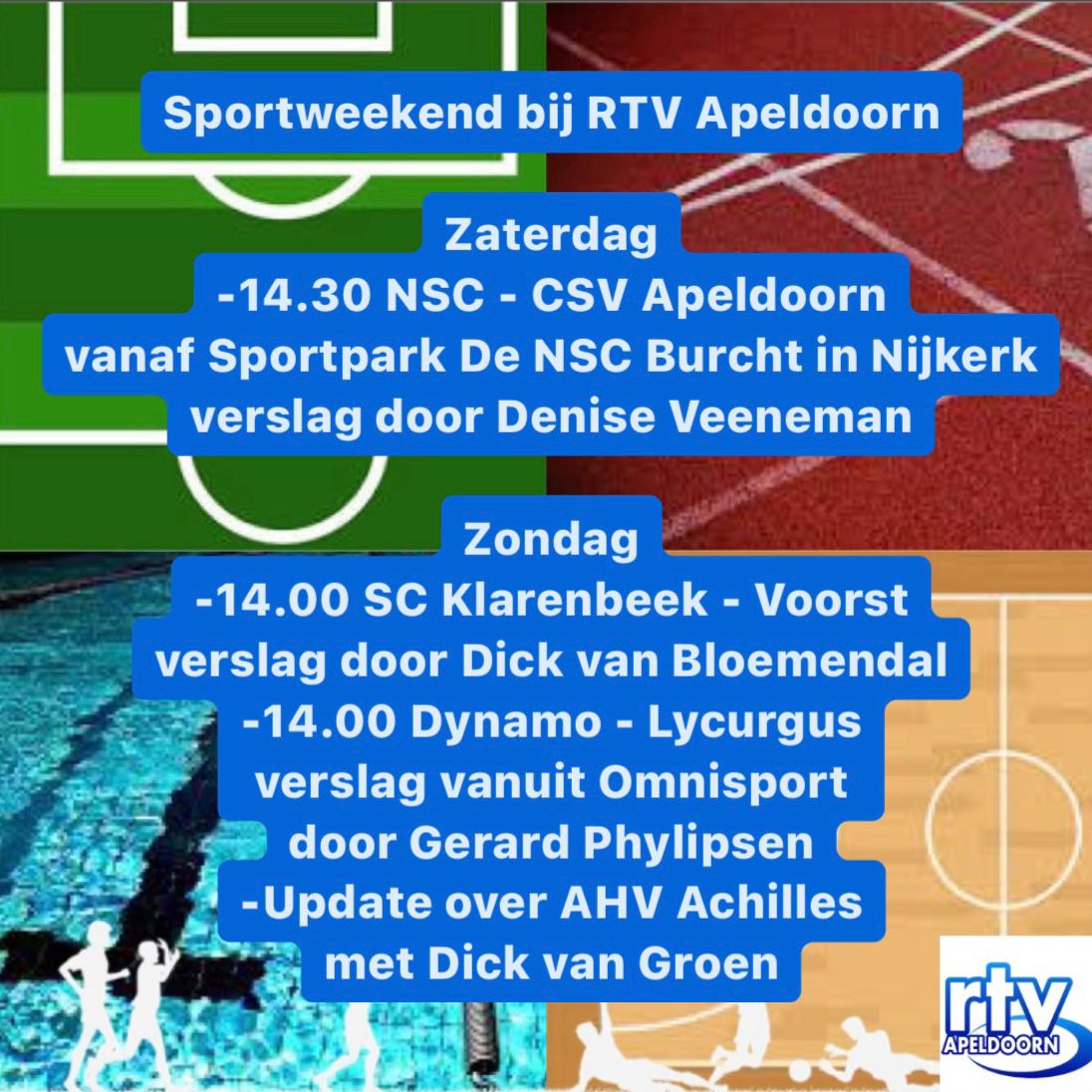 Alles meekrijgen van de sportwedstrijden van de Apeldoornse clubs? Dan kan je maar beter naar RTV Apeldoorn luisteren komend weekend. Zoals altijd zijn onze verslaggevers weer op pad om jou op de hoogte te houden van de actuele standen en ontwikkelingen.