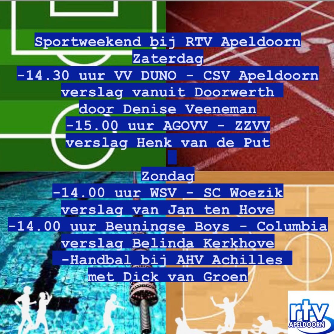 Het wordt steeds kouder, maar de winterstop laat nog even op zich wachten. En dus blijf je het komende weekend bij RTV Apeldoorn weer helemaal op de hoogte van het laatste sportnieuws.