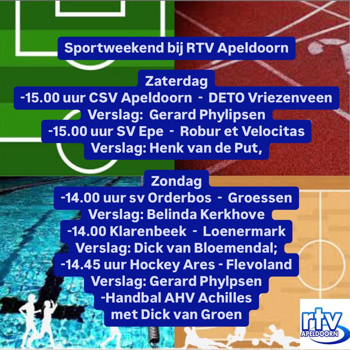 Er staat een druk sportweekend voor de deur. De verslaggevers van RTV Apeldoorn gaan op pad en houden je op de radio volledig op de hoogte van de laatste standen en ontwikkelingen.