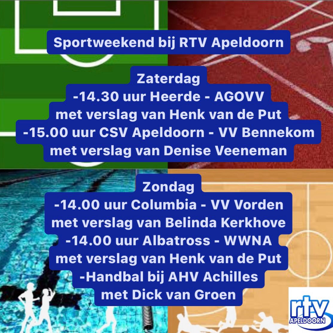 Met weer een nieuw weekend voor de deur is het ook tijd voor weer nieuwe sportwedstrijden. En daar besteedt RTV Apeldoorn natuurlijk weer aandacht aan.