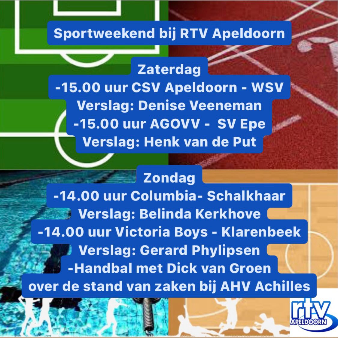 Het komende weekend is er weer sport bij RTV Apeldoorn. Onze verslaggevers staan klaar om op pad te gaan en je volledig op de hoogte te houden van de laatste ontwikkelingen en doelpunten.