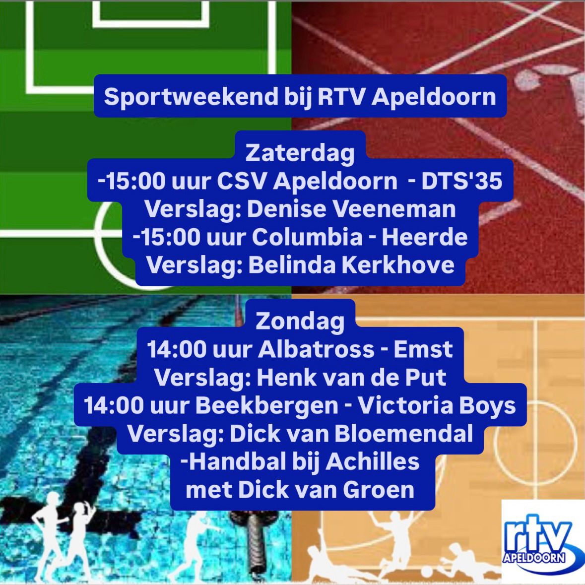 Apeldoorn Sport is er weer komend weekend en dus hoor je natuurlijk weer live radioverslag van de verschillende wedstrijden.
