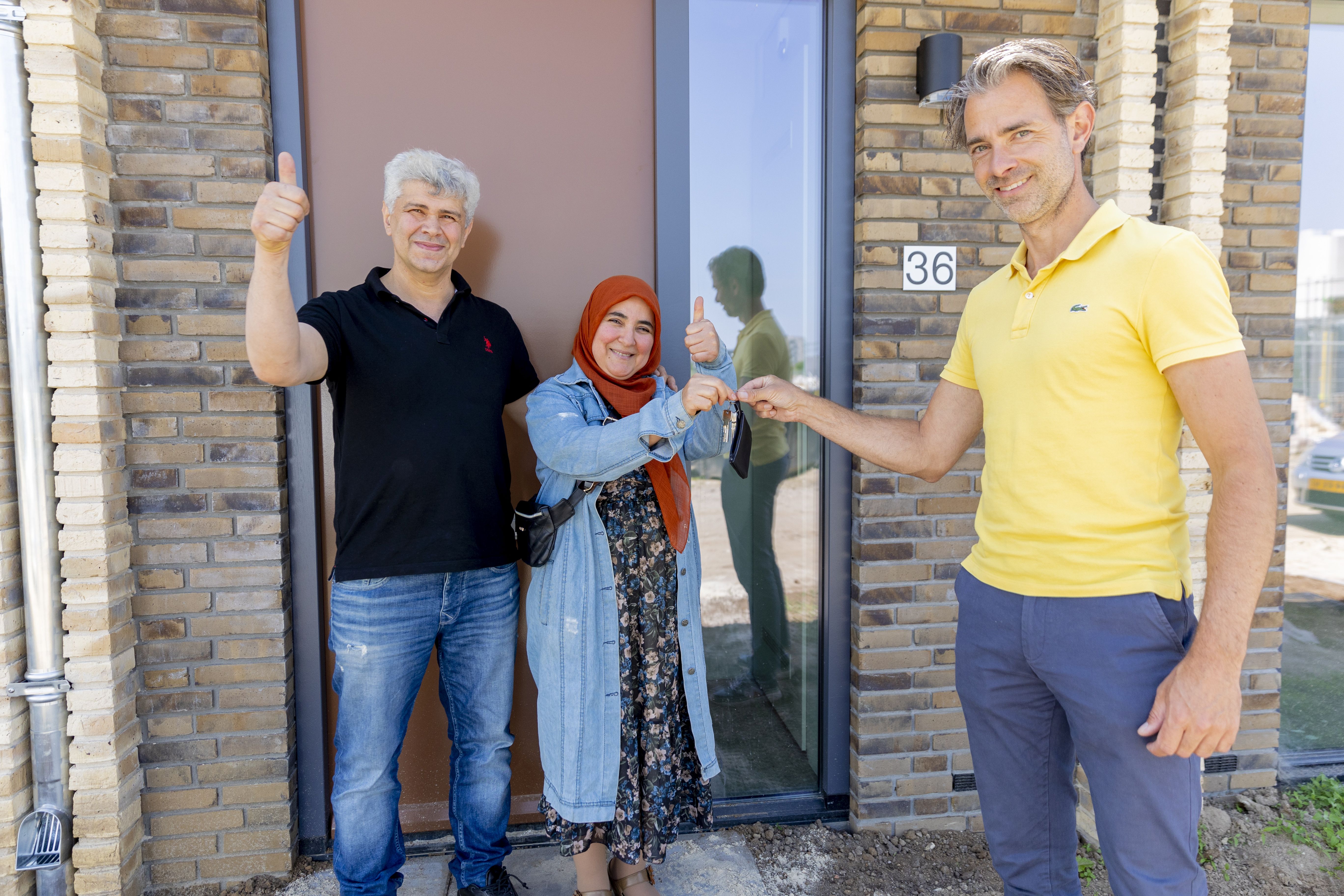 Een feestdag voor de nieuwe bewoners van de tweede fase van nieuwbouwproject De Wingerd in de wijk Zuidbroek in Apeldoorn. Onder een stralend zonnetje ontvingen zij de huissleutels van hun nieuwe woni...