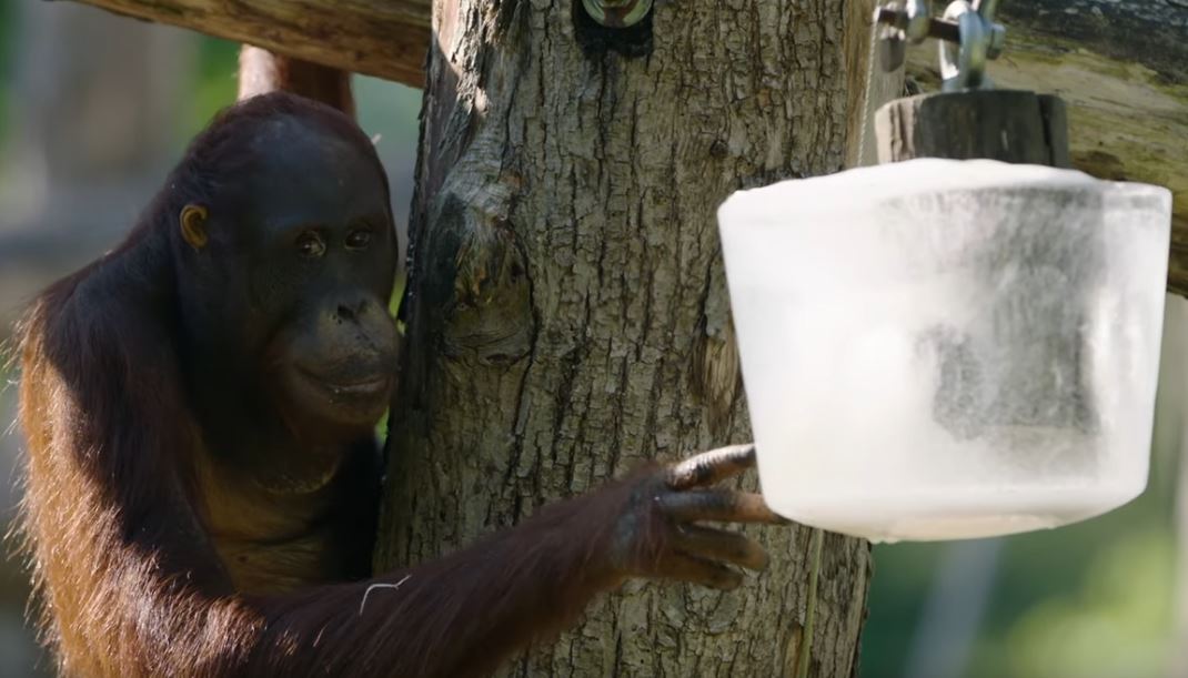 Reuze-ijsje voor de orang-oetans in Apenheul