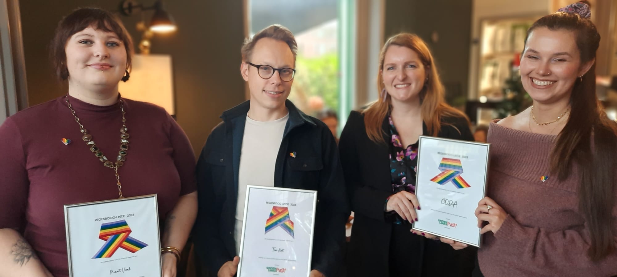 CODA laat het hele jaar door de progress vlag wapperen en organiseert regelmatig inspirerende tentoonstellingen rond het regenboogthema, waaronder een indrukwekkende expo over drag. Ook zet CODA zich actief in voor de Apeldoornse regenbooggemeenschap door het beschikbaar stellen van workshopruimtes, menskracht en ondersteuning bij het naar Apeldoorn halen van de interseksetentoonstelling. Met veel aandacht voor diversiteit en inclusie verdient CODA een Regenbooglintje als erkenning voor hun voortdurende inzet.