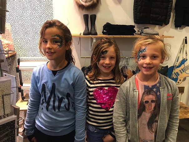Bij kinderkledingwinkel Hedgehog & Deer staat een rij kinderen die zich wil laten schminken, uiteraard in griezelthema.