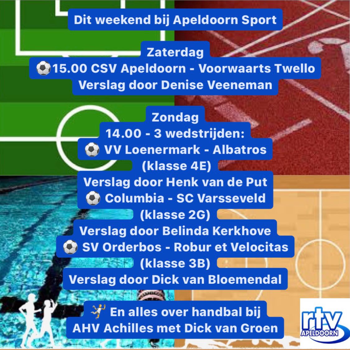 De zomer zit er weer op, ook voor de Apeldoornse sporters. Het komende weekend staat het eerste competitieweekend weer voor de deur. Dat betekent dat je bij RTV Apeldoorn weer heel veel sport meekrijgt. De verslaggevers gaan weer op pad en doen live verslag tijdens de verschillende radioprogramma's op zaterdag én zondag.
