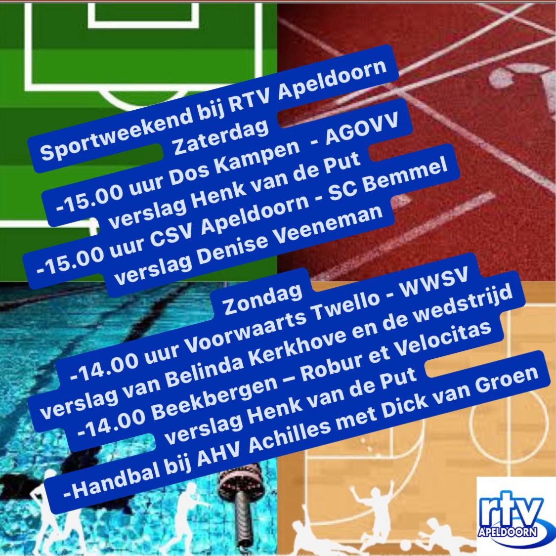 Het komende weekend bij RTV Apeldoorn, besteden we uiteraard weer aandacht aan de sport in Apeldoorn. Geen zin om de deur uit te gaan ervoor? Luister dan naar RTV Apeldoorn en je hoort precies wanneer er waar gescoord wordt.